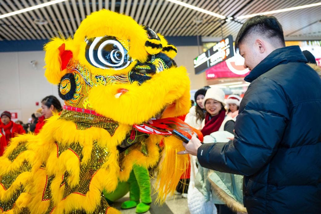 此次快闪活动生动展现了岭南文化的独特魅力。在哈尔滨太平国际机场到达区域,“暖冬财神”与“花篮妹妹”向来往旅客派发花束、红包以及具有广东特色的文旅礼品,结合醒狮互动表演,吸引众多旅客驻足互动和拍照留念。