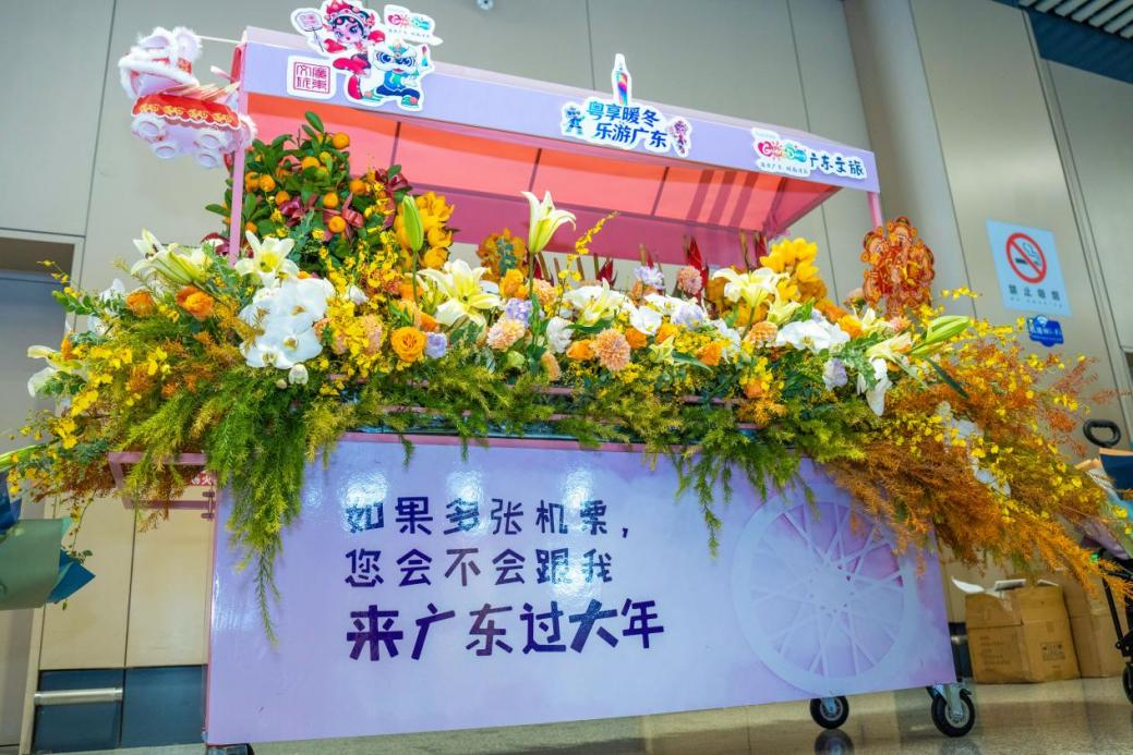 活动以沉浸式互动体验为核心,紧扣辞旧迎新时间节点,通过鲜花、祝福与岭南风情元素,向广大旅客传递南国温暖,以“广货行天下 文旅邀您来”的宣传口号,积极营造“到广东过大年”的欢乐氛围,进一步提升广东文旅在东北客源市场的品牌影响力。