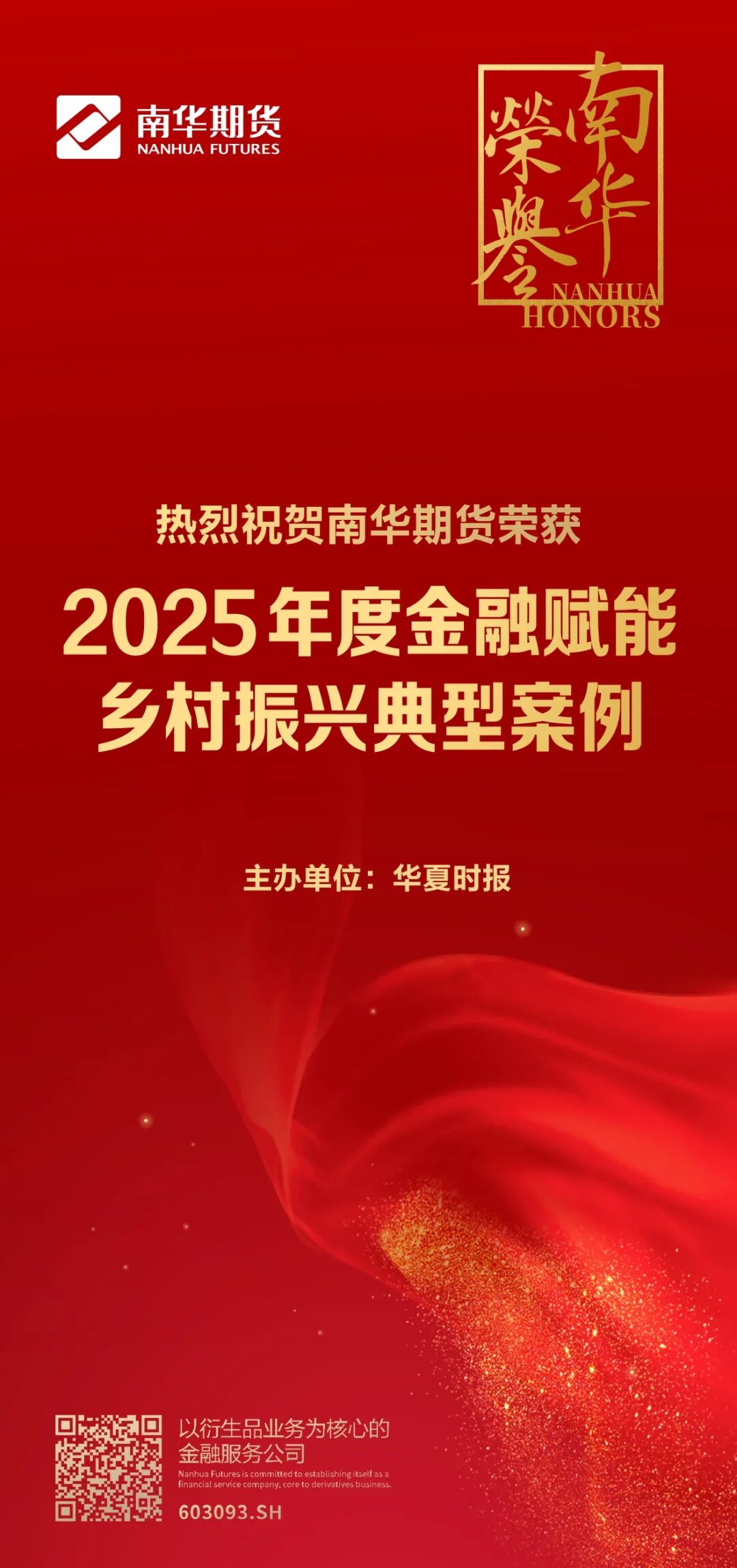 12月12日,由华夏时报社主办的“第十九届华夏机构投资者年会暨华夏金融(保险)科技论坛”在北京隆重举行。本届年会以“活力与韧性 拓新与赋能”为核心主题,意在回应时代之问,凝聚发展共识,探寻未来路径。会上,南华期货荣获2025年度金融赋能乡村振兴典型案例。